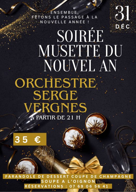 L'orchestre Serge VERGNES vous invite à réserver dès maintenant votre nuit dansante de la Saint-Sylvestre - Cotillons - Ambiance assurée - Attention : Dans la limite des places disponibles.